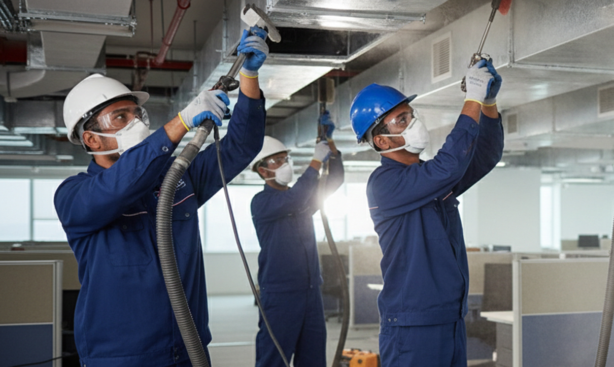Our AC Duct Cleaning Services are designed to improve indoor air quality, system efficiency, and overall health of your space. Using advanced equipment and industry-approved methods, our experienced technicians thoroughly clean air ducts, vents, diffusers, and HVAC components to remove dust, allergens, mold, and harmful contaminants. We serve residential villas and apartments, as well as commercial and office facilities, ensuring compliance with local health and safety standards. Regular AC duct cleaning helps extend the life of your HVAC system, reduce energy consumption, and create a cleaner, healthier indoor environment.